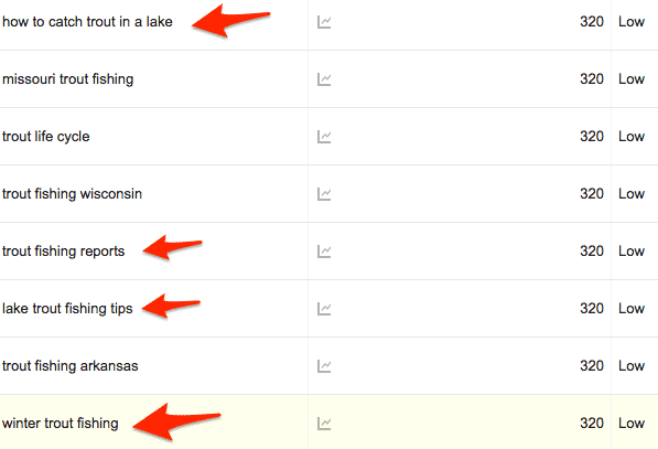 So now what I would do is mention those keywords in my trout article where they fit in the best. I would do each keyword 2 or 3 times depending on how long the article was.