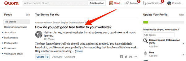 Head over to Quora and type in your keyword, find questions to answer.